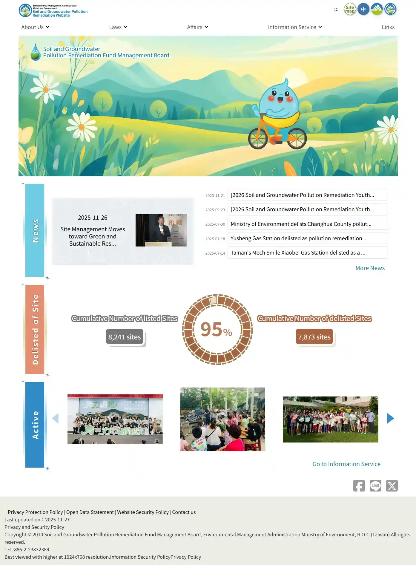 The Soil and Groundwater Pollution Remediation Website (Soil and Groundwater Website) is the official public platform of the Soil and Groundwater Pollution Remediation Fund Management Board, under the Environmental Management Administration. It serves as a key resource for public education on soil and groundwater issues, offering a wealth of information related to soil and groundwater affairs. This includes an introduction to the Soil and Groundwater Pollution Remediation Fund Management Board, Environmental Management Administration, relevant laws and regulations, events, achievements, projects, and performance highlights. Additionally, the website functions as a centralized portal for regulated businesses to fulfill reporting requirements mandated by the authorities.