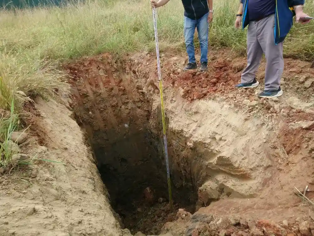 桃園市楊梅區農地地主陳情農地遭非法棄置,經桃園地檢署、內政部警政署保七總隊第三大隊、本署、桃園市政府環保局等環檢警組成專案小組共同合作偵辦,於114年10月及12月進行2次搜索與開挖,查獲外籍具華僑身分之林姓嫌疑人、黃姓嫌疑人等對外收受廢土及營建廢棄物,回填桃園4處農地。置面積達1萬多平方公尺,數量預估達4萬至5萬立方公尺。