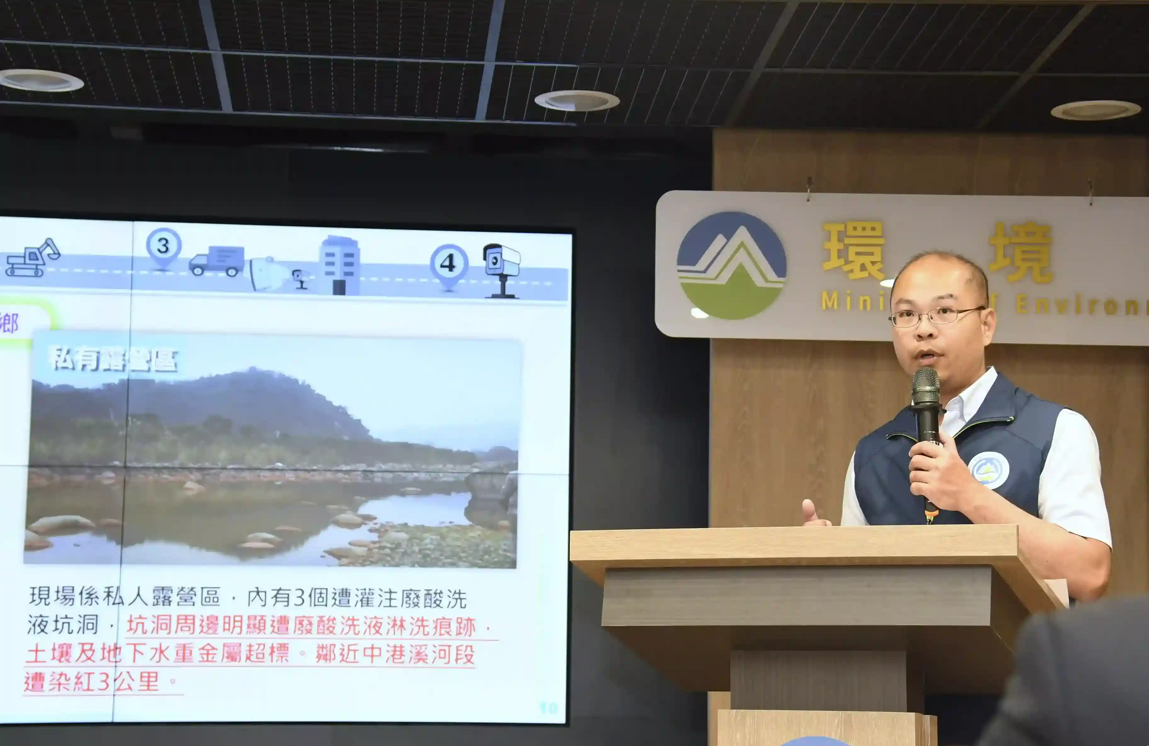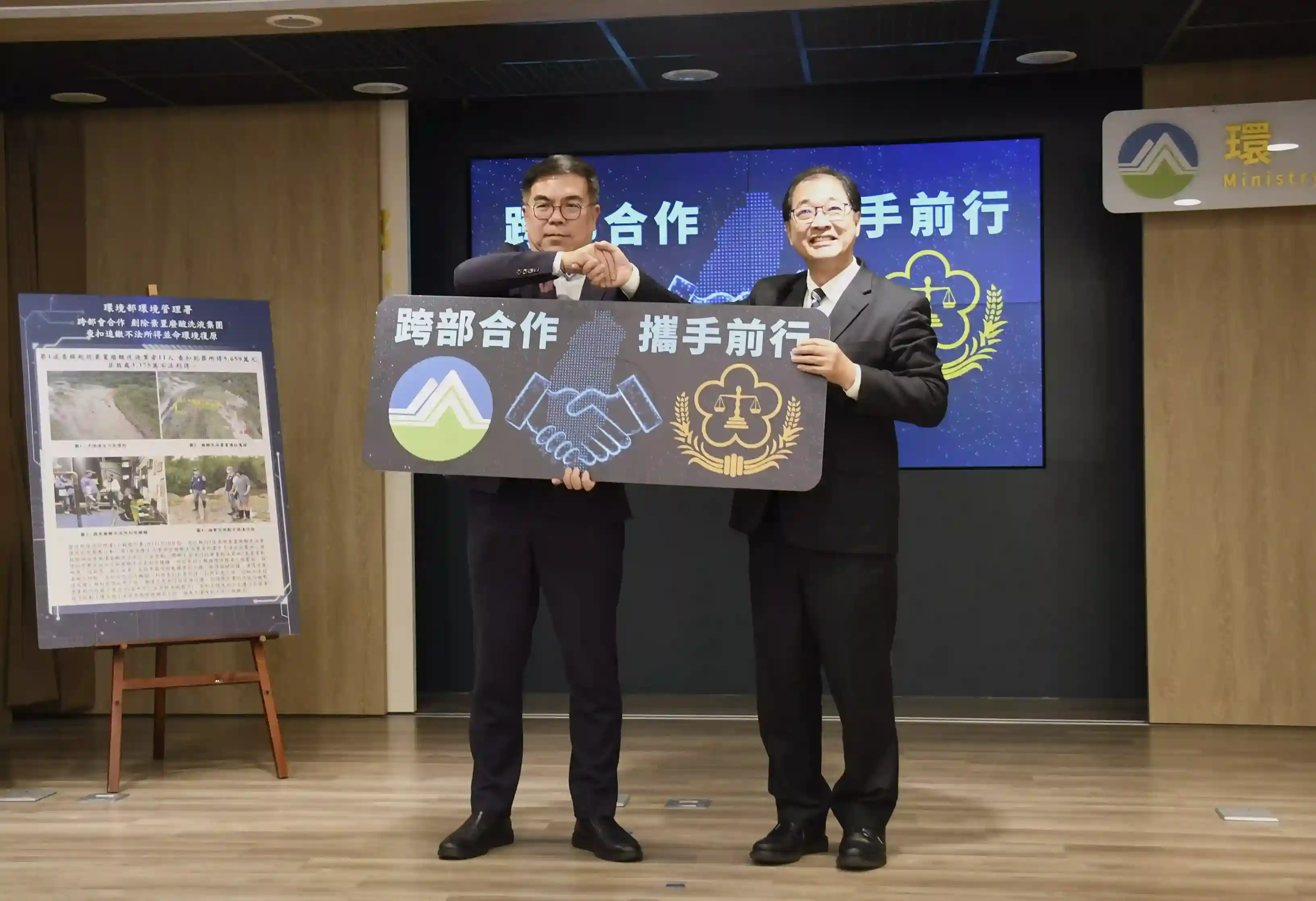 起初僅是在 111 年雙十連假期間於臺中市清水區查獲 1 輛棄置廢強酸液車輛,惟疑似背後有不法犯罪集團操作,遂由臺中地檢署立即啟動檢警環平臺成立專案小組,透過各單位專長,進行案件深入偵查,利用第 1 時間掌握之訊息及嫌犯供述,層層向上溯源,陸續查獲全臺 5 處棄置點,並成功突破以合法廢酸洗液再利用機構身份掩護非法棄置廢酸洗液之上游業者,並突破業者設下的假製程、假申報、假磅單、假出貨單、假發票等防火牆,從產源端、非法清除端、棄置端、司機及地主端全面清查,瓦解長年以合法掩護非法隱匿棄置廢棄物之犯罪網絡,查獲棄置廢酸洗液量體逾 1 萬 3,400 公噸,其餘事業廢棄物約 3,000 公噸。全案查扣 3 台怪手及 9 輛曳引車,查扣犯罪不法所得 1 億 9,000 餘萬,行政裁罰 3,375 萬,累計起訴 37 人,主嫌於法院一審遭判刑 3 年 2 月。