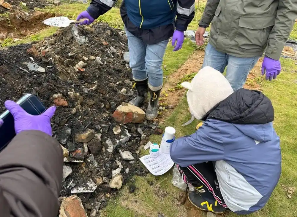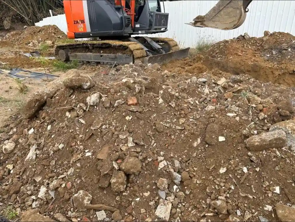 本署透過衛星影像、航測比對及地形模型建置等科技工具進行蒐證,確認該企業社多次非法棄置廢棄物。113 年 1 月再度展開聯合搜索行動,並於現場開挖查獲大量含混凝土塊、廢磚塊、廢木材、廢塑膠及廢鋼筋等營建廢棄物堆置與掩埋,證據明確。