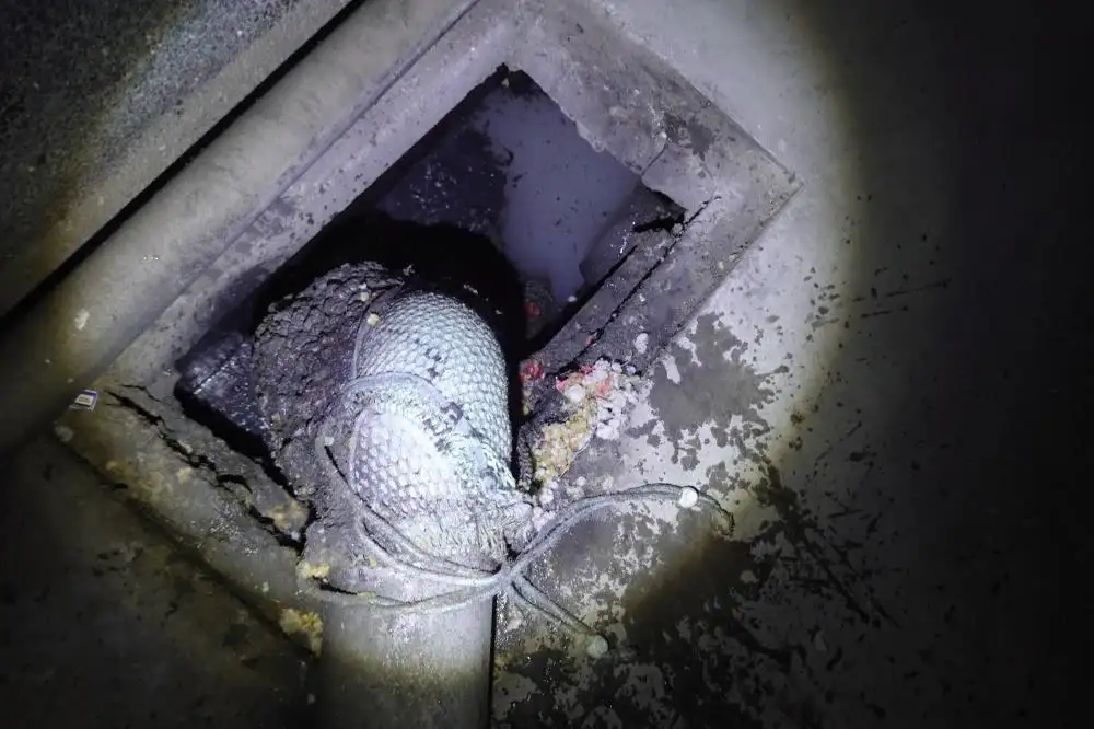 現場調查發現,該廠於兩台大型洗衣機後方違規架設大口徑塑膠管,將未經處理之洗衣廢水直接導入雨水側溝,並以塑膠桶刻意掩蔽排放口。督察人員拆除掩蔽物後,確認該廢水未經廢水處理設施處理即排放,明顯屬「繞流排放」行為,當場命業者立即停止排放並封管,並依《水污染防治法》第 18 條之 1 告發。