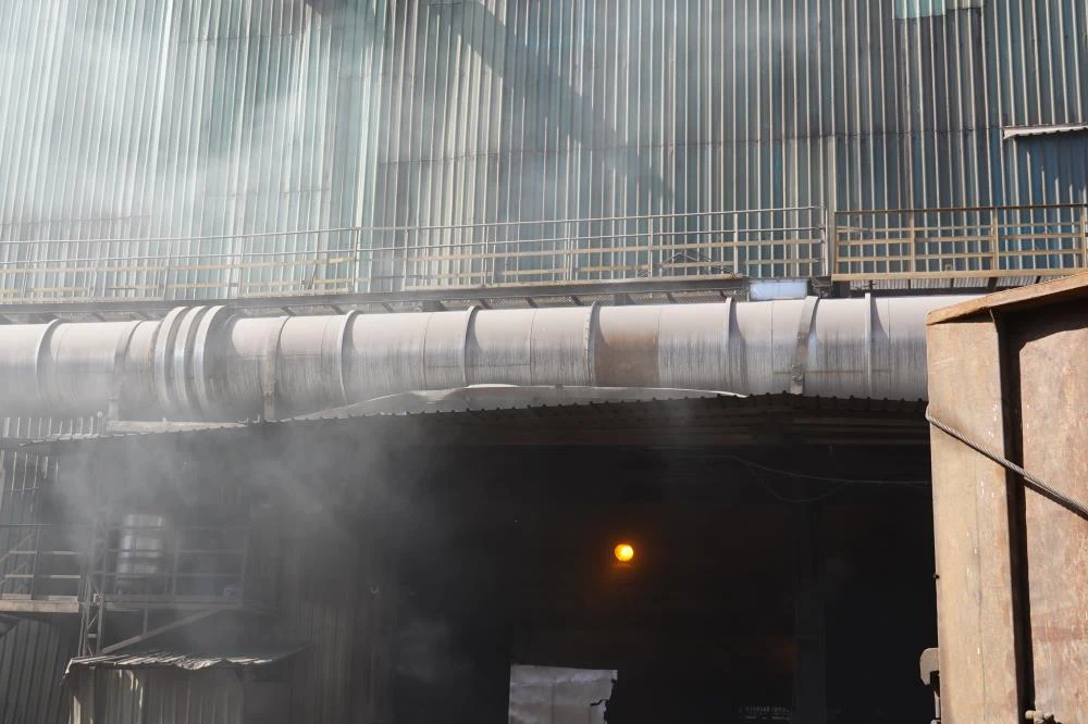 由本署南區環境管理中心督察人員與臺南市環保局組成聯合小組進入易○鋼鐵廠,發現廠內進行廢鐵融化、煉製及澆注作業時,產生大量白色粒狀污染物。雖設有抽氣設備,但出入口水霧抑制系統密度不足,導致煙塵逸散至廠外。督察人員立即蒐證,確認違規事實後依《空氣污染防制法》第 32 條告發,並要求立即改善設備運作。