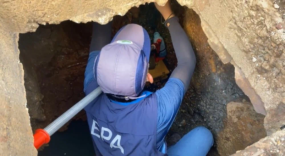 為確認廢水來源,督察人員使用染劑追蹤法,並親自進入僅容一人通行的陰井內採證,確認染色廢水自廠內流出、無其他來源,違法事證明確。業者雖辯稱為外籍員工誤操作,惟經比對監控紀錄與蒐證資料,確認該廠屬再犯行為。現場即要求業者截斷違規管線,防止污染持續發生。